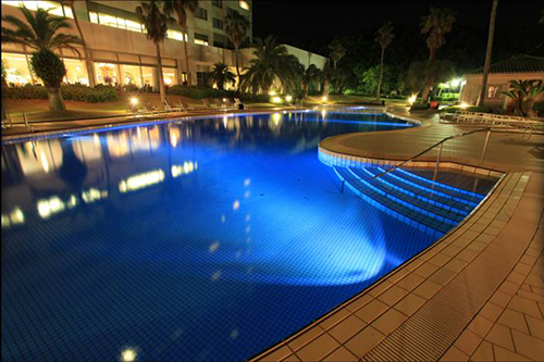 浴槽の側面に取り付けた光源部から、LED光で水中を照明。